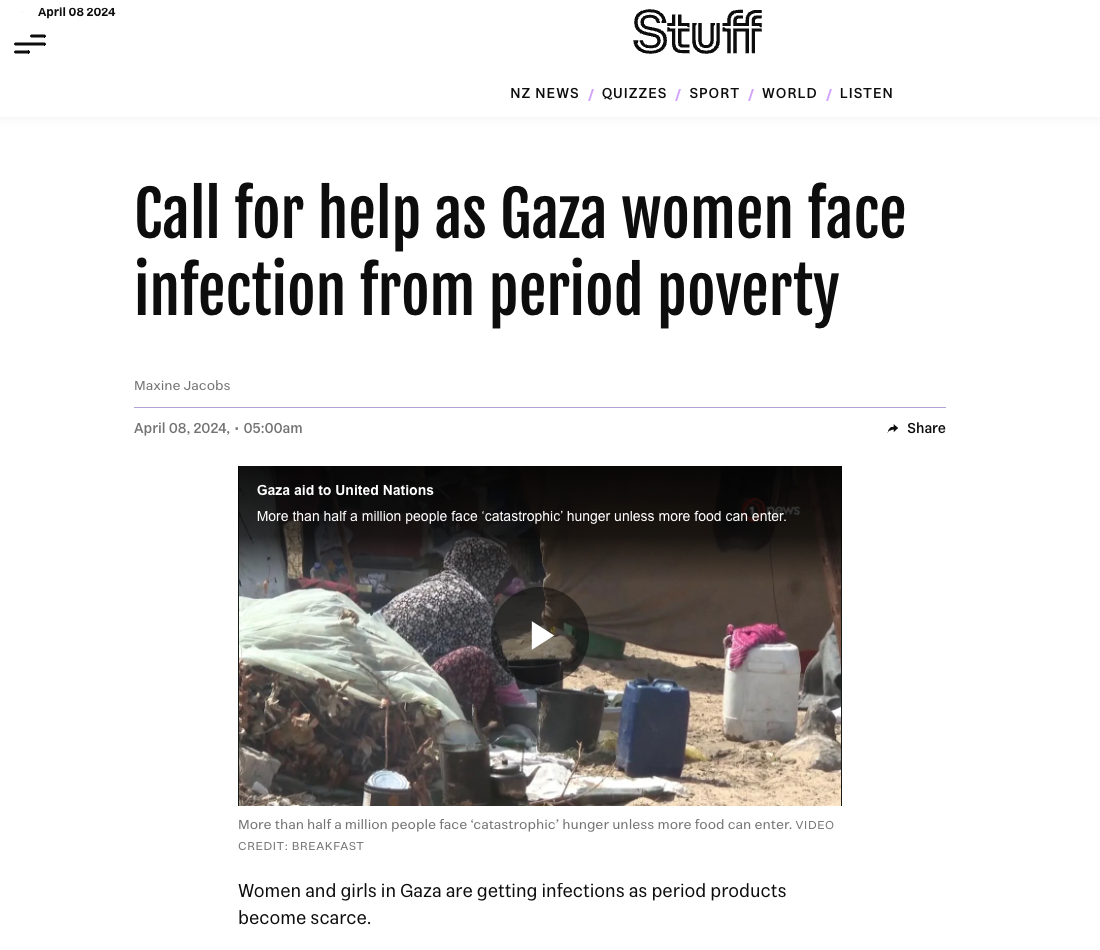 Re: News | Period Poverty: NZ company to supply period underwear in Gaza | April 2024