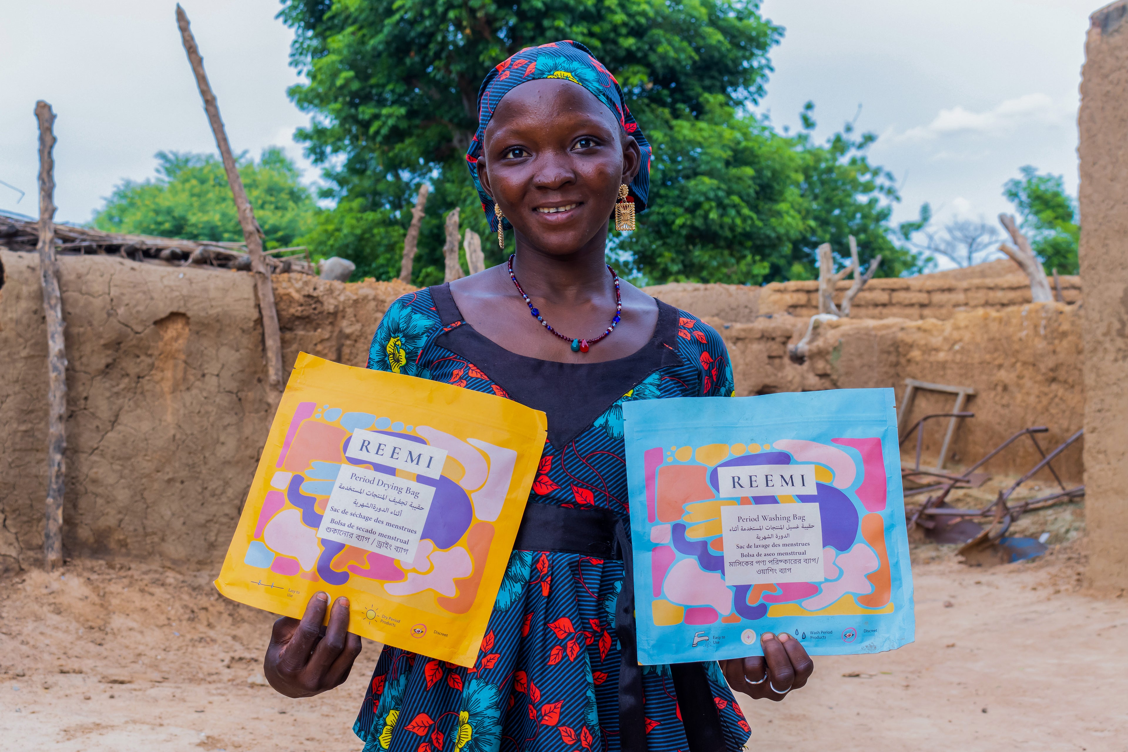 - Easy to use: The bag has an internal cord (like a washing line) where the menstrual product is placed, then tied shut with buttons and pegs for hanging.